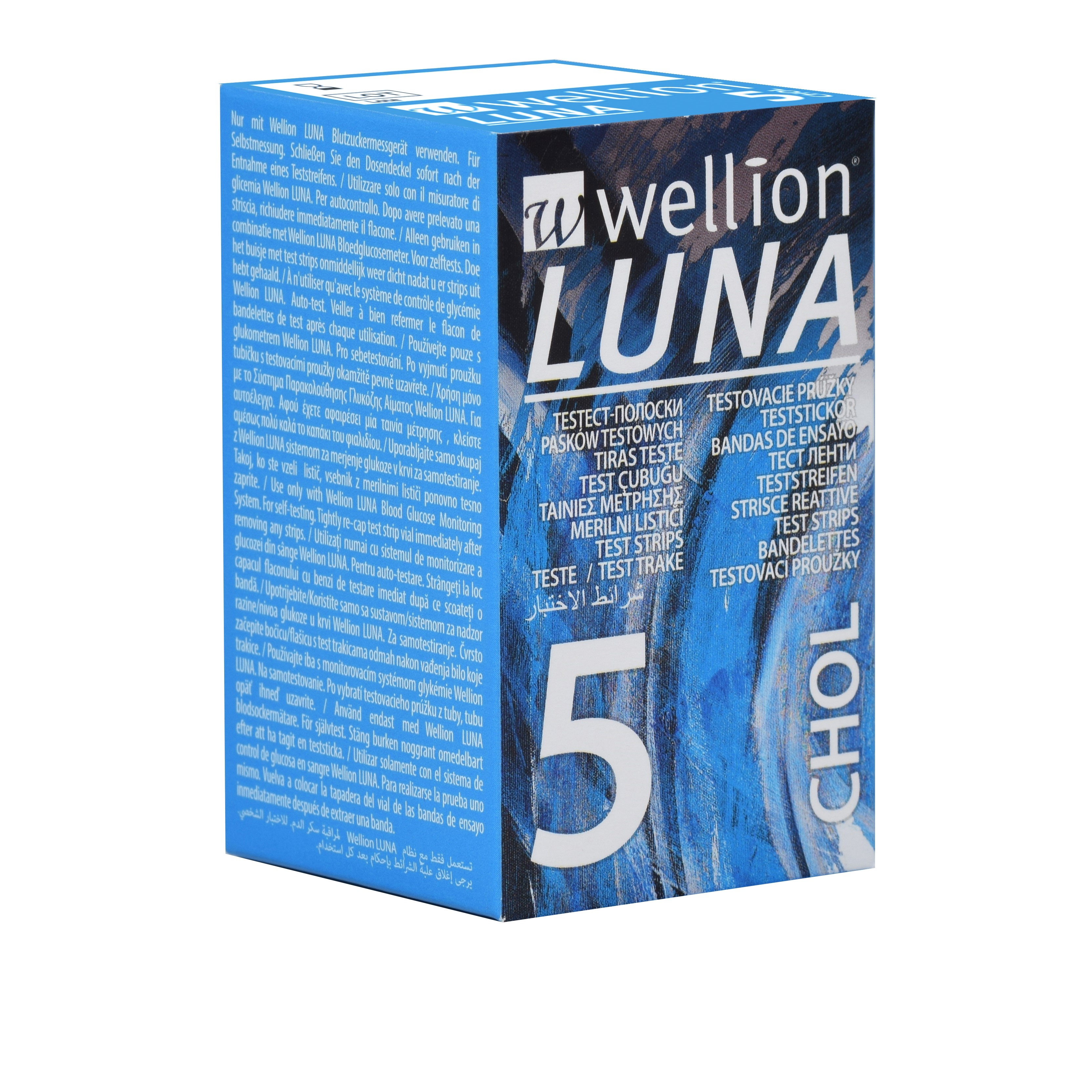 Teststickor för mätning av kolesterol i blodet i mätaren Luna Duo. 5-pack. Hållbarhet 18 månader från produktion (se datummärkning på förpackningen). Öppnad förpackning ska användas inom tre månader från förpackningens öppnande.